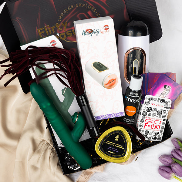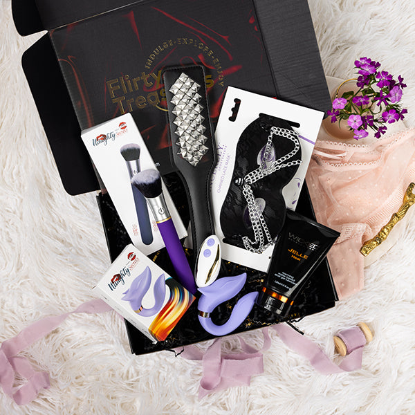 Indulge in the art of pleasure discreetly and luxuriously with Flirty Treasures, North America's premier adult subscription box service for exploring desire in a safe, enjoyable, and sophisticated manner.